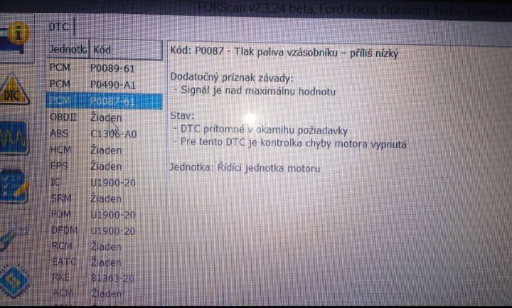 Riešim na kamarátov om mk2 1.8tdci problém, keď sa motor ohreje, tak ne štartuje. Točí aj 10sekund,niekedy naskočí až na 5ty pokus. Chyby v diag na fotke, teplota paliva ukazuje pred štartom okolo 40stupnov,po štarte cca 50. Tlak paliva pred štartom je cca 500psi po štarte drží na cca 30000psi.ventil regulácie pred štartom pri zapnutom zapaľovanie je zatvorení, točí a stále zatvorení, jak naštartovalo tak napísalo ze je otvorený...