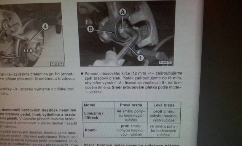 Tak mohu upřesnit, že na mém kombíku se na levé straně musí točit proti směru hodinových ručiček... mám, ale brzdy Bosch - takže imbus nemám kam strčit a je potřeba správný přípravek