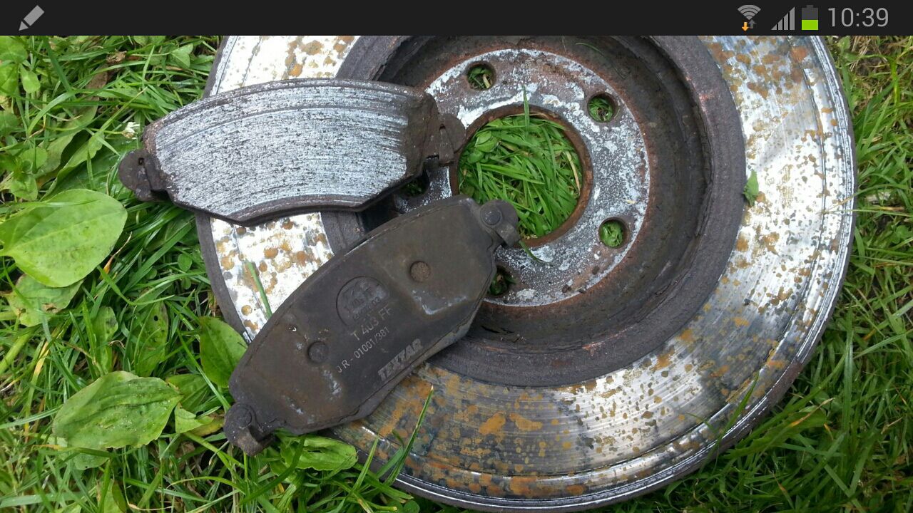Tohle je tezky. Na obrazku jsou puvodni kotouce a desticky z meho auta. Brembo kotouce a Textar desticky. Co si myslet kdyz desticky mely dost matrose ale pekne vytrhany z kraju. Brzdy jsem menil jelikoz meli hrozne mekej nabeh. Ted je to lepsi ale zas to clouma s volantem.