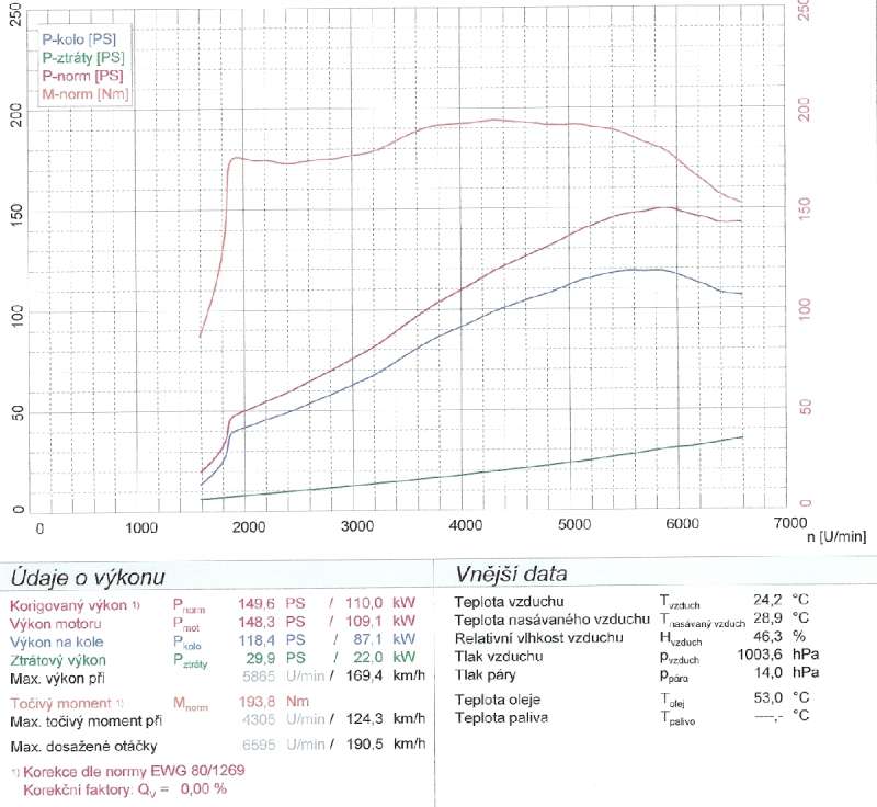 Vsimnite si ze je to graf výkonu na kolesách :idea: (modré čísla na tlačených výstupoch brzdy Profituning-u)