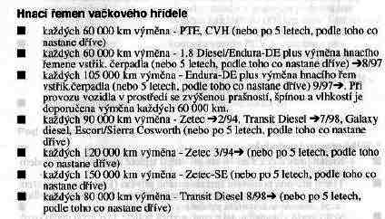 Hnací remen vackového hrídele Každých 160.000 km / 10 let - výmena (operace 21 304 9)