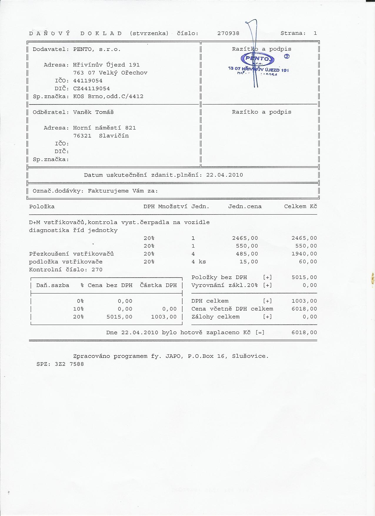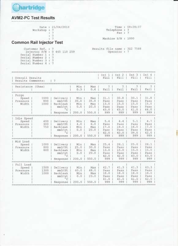 Pro Vaši informaci přikládám výsledky testů servisů vstřikování.