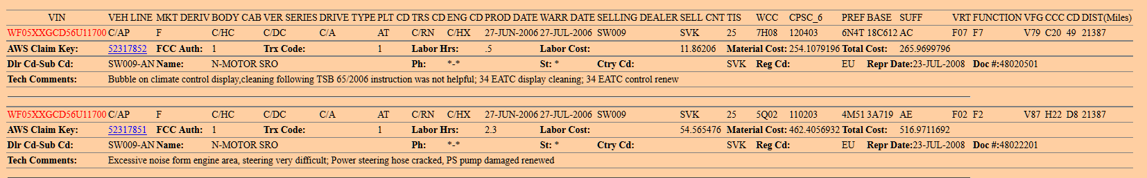 poiko píše:můžu ještě jednou poprosit o dekodovaní VINka? zde odkaz na inzerát ->poiko píše:zdravím, mohu poprosit o info k WF0LXXGCBLBL87618 ? měla by tam být jedna zár. oprava a diag. záznam. díky
