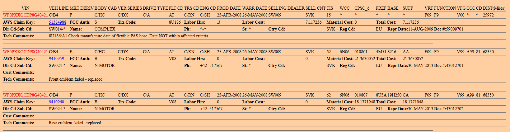 Zkrátka mi jde o to, že je možnost zjistit, co se při těch záručních opravách dělalo. Takhle třeba vím, že v roce 2003 se dávalo na záruku nové palivové čerpadlo...