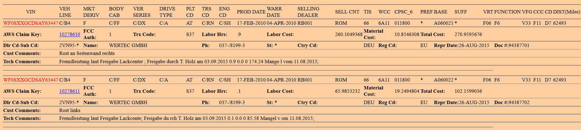 Zdravím, mohli byste mi, prosím, proklepnout VIN: WF0SXXGCDS8D45612 ? Zajímají mě hlavně nájezd a případná poškození. Odkaz na inzerát bohužel nemám :-/