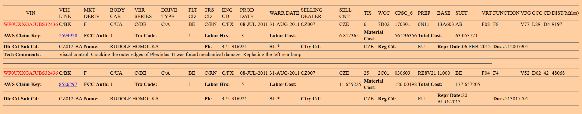 James_CZ píše:Ahoj, můžu poprosit o dekodování vin? Dle fordzony je tam 13 záručních oprav.