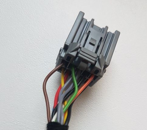 Takže, konektor je tenhle 8-pinový, 7 pinů je obsazeno (jde ven do zrcátka. Vypadá to, že 7 různých kablíků jde i z auta, ale to tipuju jen podle fotky. zdá se mi, že stejné konektory mají Mk2 C-Maxy?