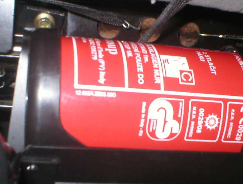 Taky o nějakým hasícím přístroji uvažuje. Měla by to být taková pojistka pro strýčka náhodu. A osobně se mi líbí to umístění pod sedačkou. Je tam přístupný, není vidět a nijak nepřekáží.