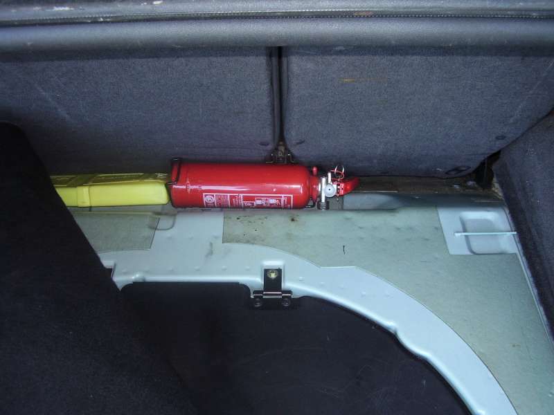 Já jsem šoupnul hasičák do kufru za sedačky do toho žlábku,tam to ničemu nepřekáží, i když se mi líbí i to umístění v zadní boční kapse,ale už se mi to nechce předělávat,tam mám uložený lano,lahev s olejem a nářadí.