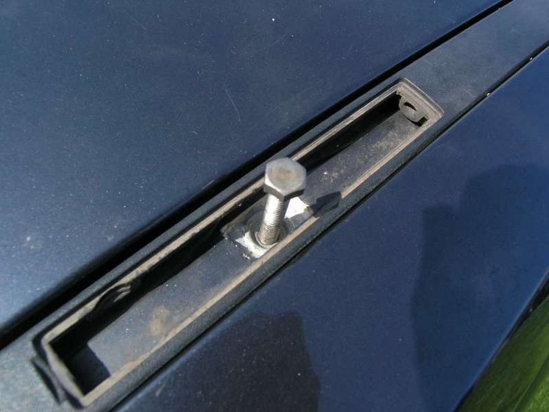 V zimě jsem narychlo vydlabal díry do tmelu a po zimě jsem je zašrouboval 10mm dlouhýma šroubama M6 se zápustnou hlavou. Minulý týden ve středu jsem je zkusil vyšroubovat, a 2 byly chycené rzí. Rozhodl jsem se udělat následující. Zvětšil jsem díru do tvaru pravidelného obdelníka viz. foto. Nešlo ani tak o zvětšení, ale dělal jsem to hlavně proto, abych odstranil špínu,