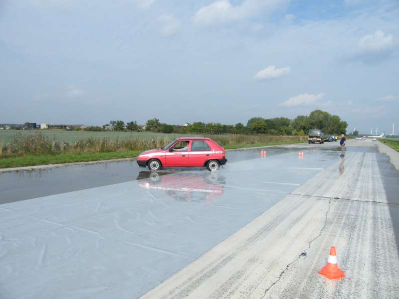 jak už jsem se tady zmínil, tak se u nás na letišti organizovala škola bezpečné jízdy pro hasiče a PČR Olomouckého kraje, kterou organizovalo egionální pracoviště BESIP. Cílem bylo naučit se oládat vozidlo na kluzké ploše a uvědomit si, že kolo,které brzdí nezatáčí :wink: