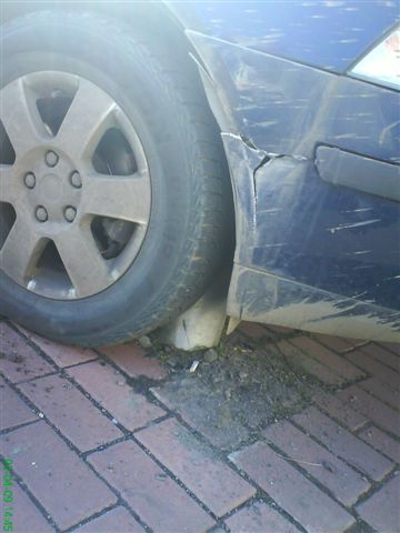 Dal bych opravu a vyprošťení auta k úhradě těm de...tům co tam nechali namontovat tak nízké sloupky.Pokud chtějí ohradit hranu parkoviště sloupky,měly by být minimálně 1 metr vysoké,aby je ani žena nepřehlédla.
