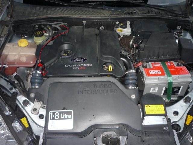 Neni to přímo po filtrem .Ale v tý mezeře u filtru .Když koukáš na motor,na levo jsou rozvody a mě přímo okolo nich vede hadička.Nevím jestli se až tak moc hnula.