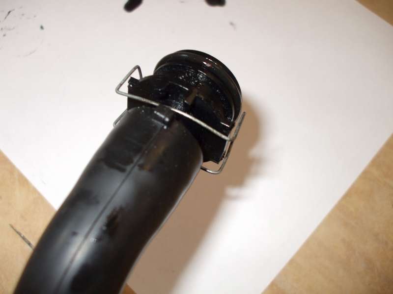 Noo , ja som tie poškodené očká odstránil úplne /na brúske/,z tenkého ocel.drôtika vytvaroval taký "držiak" v tvare tých očiek,ale aby držal až za tou umelinou. Spoj drôtika som scínoval.Je vlastne pritlačený tou gumovou "fajkou" k umeline /na ktorej boli pôvodné očká/