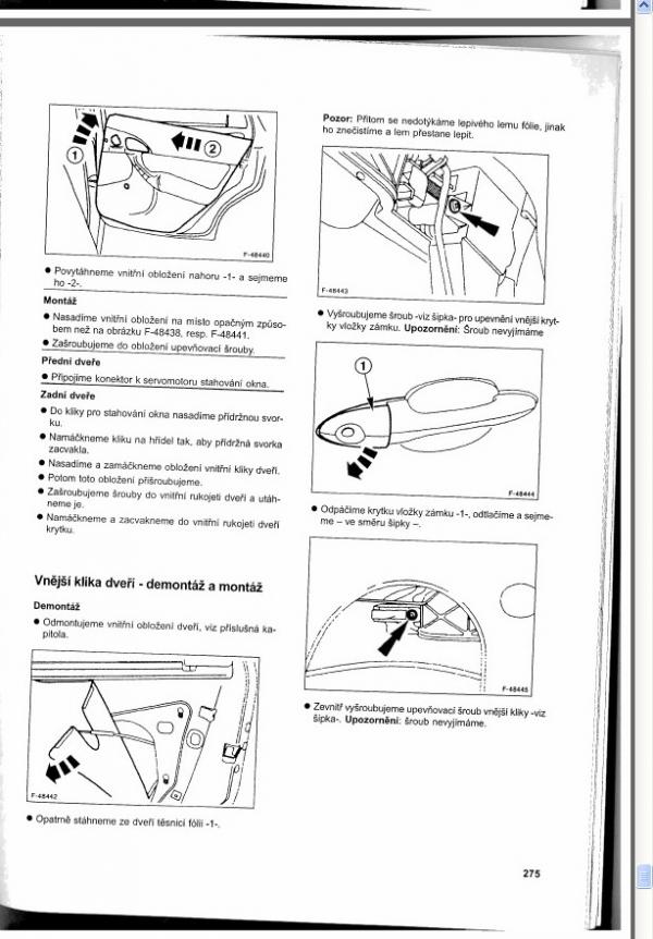 ... staci odloupnout levy horni roh tak aby se clovek dostal ke klice z druhe strany a u zadnich dveri jeste vyloupnout gumovou zatku. Pod ni je pristup k sroubku ktery drzi zadni cast kliky (takovy ten trojuhelnicek v kterem sou ve prednich dverich zamky).
