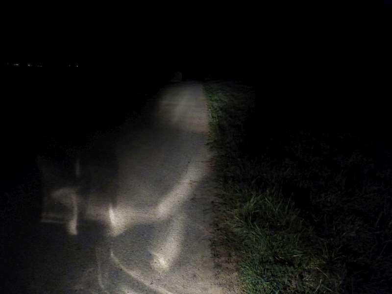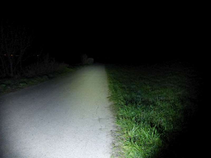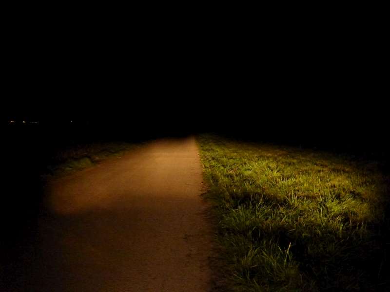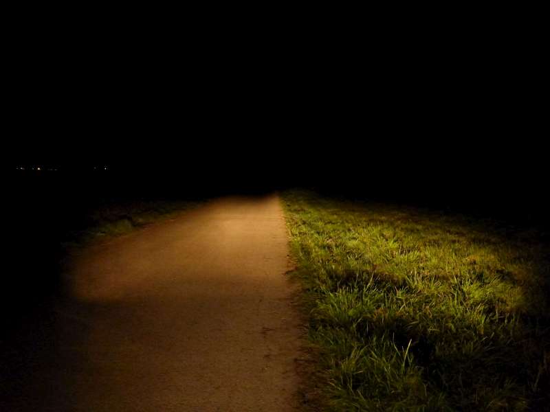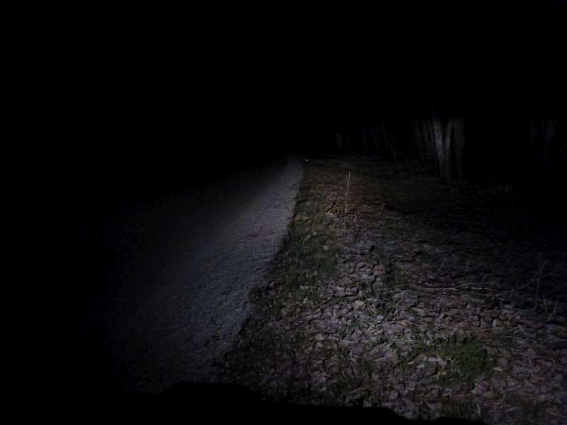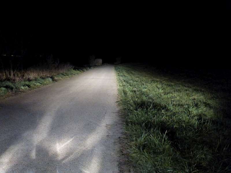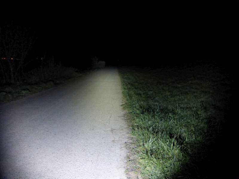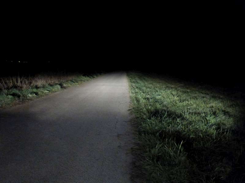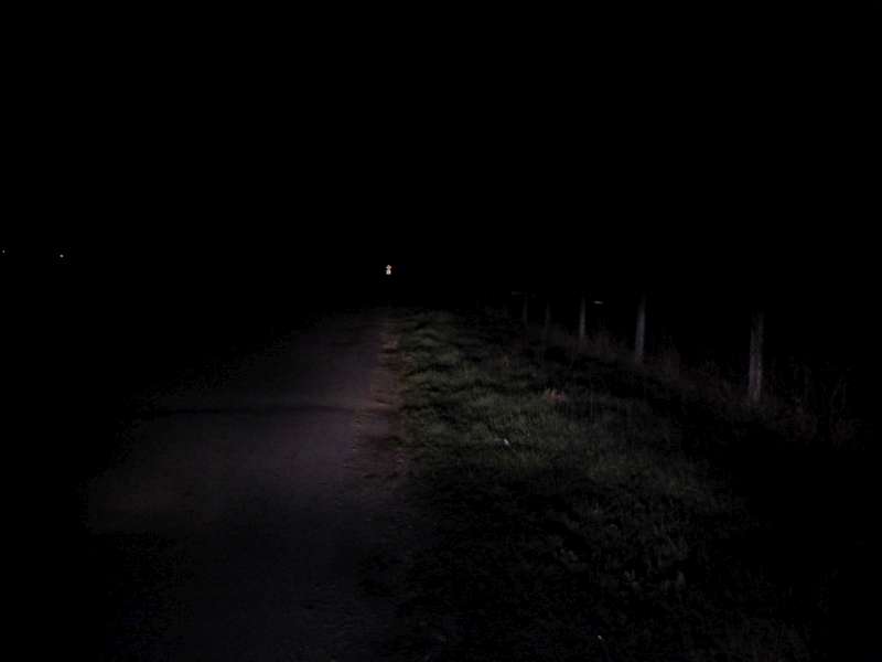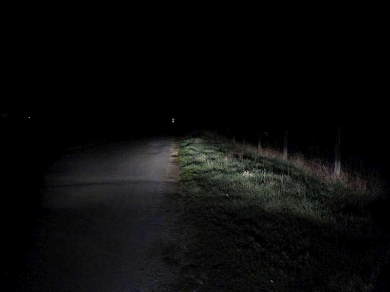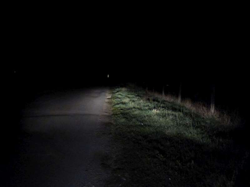 Jasne viditelne, ze svieti len pred autom, kde je prepaleny bod a vo vacsej vzdialenosti tma.