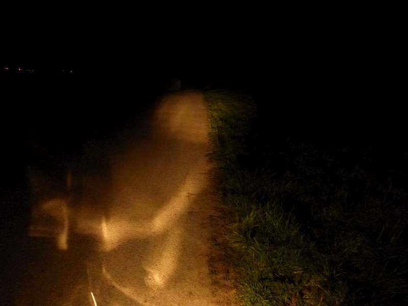 Nasledujuce fotky su fotene kvalitnejsim fotakom v rezime plny manual, s dvomi roznymi nastaveniami clony a uzavierky (samozrejme vzdy rovnake medzi parmi). Fotene za dedinou, za uplnej tmy. Svieti iba pravy, lavy reflektor zakryty - kvoli otrasnemu pristupu do laveho reflektoru a problematickemu prehadzovaniu ziaroviek v noci na ceste.
