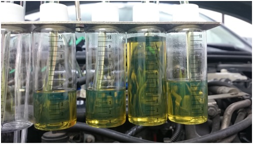 Potom som spravil prepadovy test. Po 4 minutach uz bola flasticka skoro plna prepadovou naftou na 3-m valci. Ani zvysok nevyzeral najlepsie, ale na danom valci to bolo velmi zle.