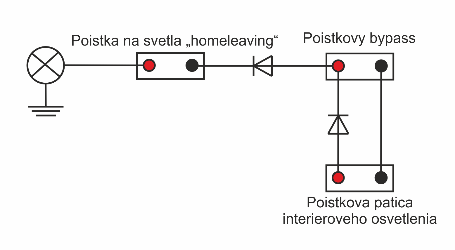 S tou diódou by to fungovalo ako? Správne to chápem tak, že by som zapojil jednu na tú priechodku na poistku a potom by šiel ďalej kábel k svetlám a druhú na konektor ktorým je do GEMu pripojená kabeláž osvetlenia vnútra auta?