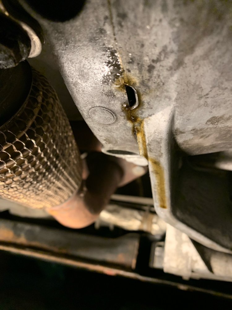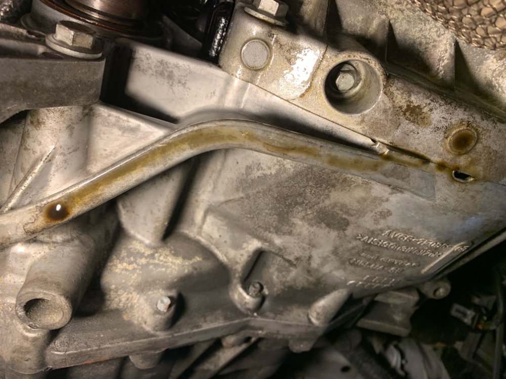 jsem po opravě potkaného motoru, jakmile se mi vrátilo auto, za pár dnů jsem zjistil, že uniká (kape) olej z motoru. Opravu jsem reklamoval - chlapíci tvrdili, že kapalo nějaké těsnění u převodovky a že to opravili. Dnes jsem sundal kryt, že vyměním olej a byl jsem nemile překvapen, že únik je teď ještě větší než předtím. Olej vytéká z díry viz foto, nejvíce u zahřátého motoru. Myslíte, že se může jednat o přepad?
