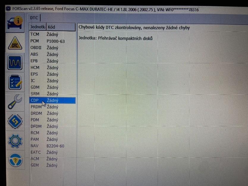 , co jen vím, tak jsme kontrolovali vin, pokud neseděl, tak se dalo že vin nesedí a následně se tedy přepsalo, jen u CDP to nefungovalo a vyhodilo chybu. Přes Forscan ho vyčtu, viz foto.