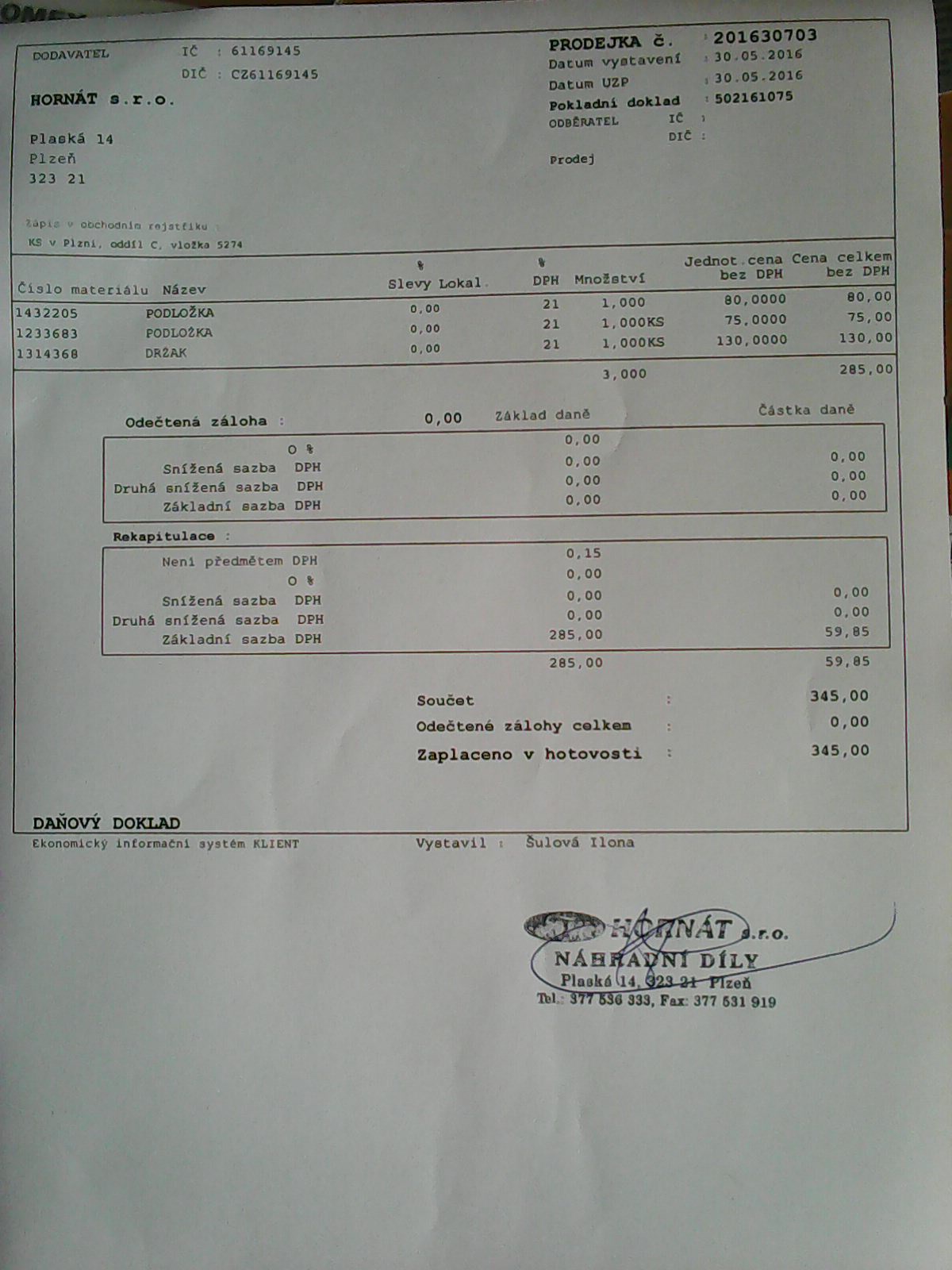Operace se zdařila. Jen pro zajímavost aktuální ceny těsnění na jeden vstřik: