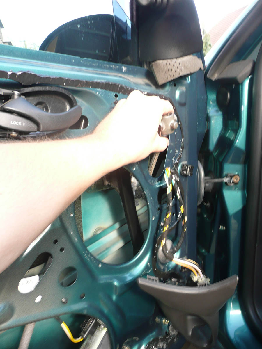 - Jestli budete dávat šroubek na ten pahýl ( si o to přímo říká) v mém případě škrtá o výztuhu dveří sice jen nepatrně,ale přeci.(volte co nejnižší a bez podložky to by mělo stačit.)Vyndávat stahovačku znovu se mi,ale nechce,na funkci nemá vliv jen v jednom místě lehce škrtne.Pozor,ale kdyby byl vyšší už by se mohl zachytit o hranu výztuhy.Jde o levou stranu.
