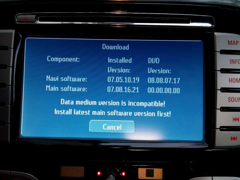 Já už upgrade měl a nešly mi mapy 2007 (na SP5.3 jsou nefunkční), proto jsem si objednával nový, tak jsem nad tím mávl rukou. Ale na to co následovalo by ses měl taky připravit, po vložení DVD a nahrání nové verze navigace se mi NX pořád dokola restartoval. Nejspíš se to stane většině lidí co provádí upgrade z 2007 rovnou na 2014 (nevím jestli i s původní verzí firmwaru z výroby, možná ne a možná ti na něm ani mapy z roku 2014 nepůjdou a to nejspíš měli namysli i z fordshopu.cz) a jediná šance jak to opravit svépomocí je si sehnat DVD minimálně z roku 2008. Dáš ho do mechaniky, necháš nahrát starou verzi navigace, dáš DVD 2014, nahraješ update a tradá všechno funguje. Ale to už se tu párkrát řešilo.