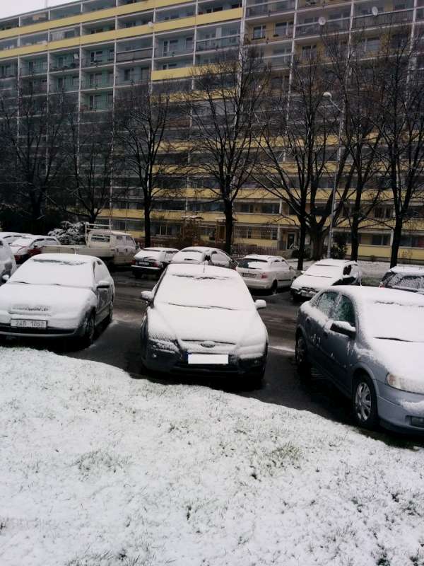 Praha - Hodkovičky v 7h ráno palubák -2 °C, škrábání skel. Do velikonoc času dost