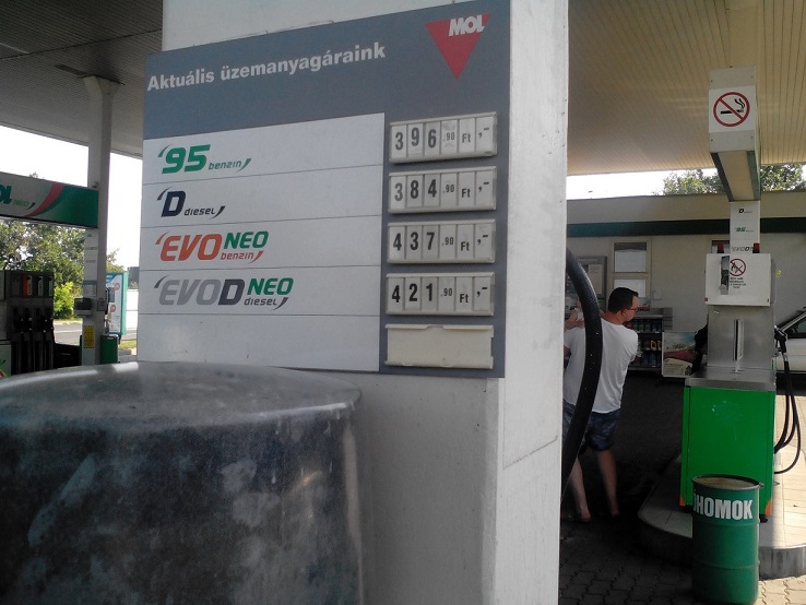 Cena Maďarsko město Balatonfoldvár čerpačka MOL minulý týden já bral EVO Diesel v přepočtu 37,98kč (měl sem kurz 100forintu 9,003 kč)