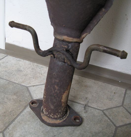 Podle výfukáře to výfukem není. Takhle vypadá ten starej kat, roura před ním je děravá (je možný, že některý praskliny vznikly při demontáži), plášť katu fest zrezlej: