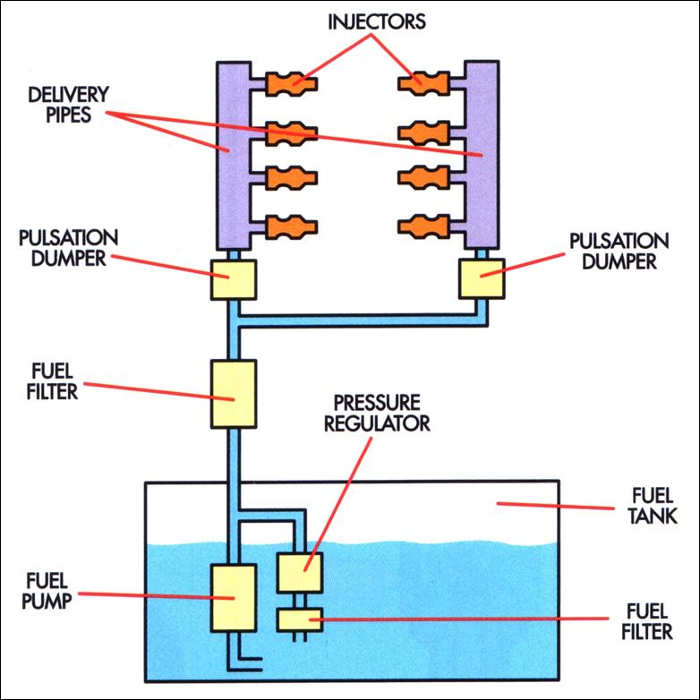Tedy cesta je nadrz (vystup pumpy) -> filtr paliva -> rozdvojeni trubek ->