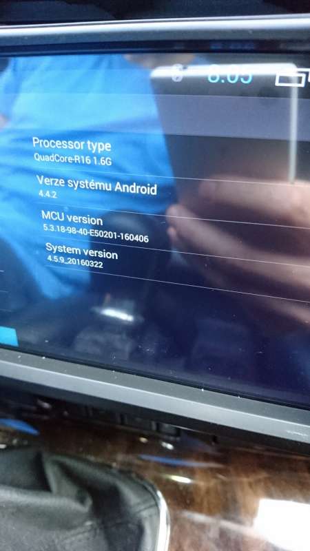 Ale stejnak bych od místních zkušených borců pár rad. Nevím, jak zjistím typ rádia. V informacích mám verzi MCU "5.3.18-98-40-E50201-160406", je to čtyřjádro R16 1.6G, verze systému 4.5.9_20160322. Jestli mi někdo najde na - pro mě zatím hodně nepřehledném - XDA fóru vlákno přímo pro mé rádio, budu mu vděčen. Rád bych provedl aktualizace a hlavně si změnit prostředí, protože to původní je nehezký. Taky mi trochu vadí, že když zapnu rádio, vždy naskočí FM frekvence 87,5 a ne některé z navolených. Po vypnutí a opětovném zapnutí se vše opakuje.