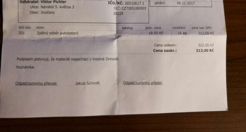 Aha, to jsem nevěděl, že při vrácení staré baterie se dá získat nějaký příspěvek.solfan píše:kupil som exide, 44ah, 1350 kc, staru vykupili za 220 kc,
