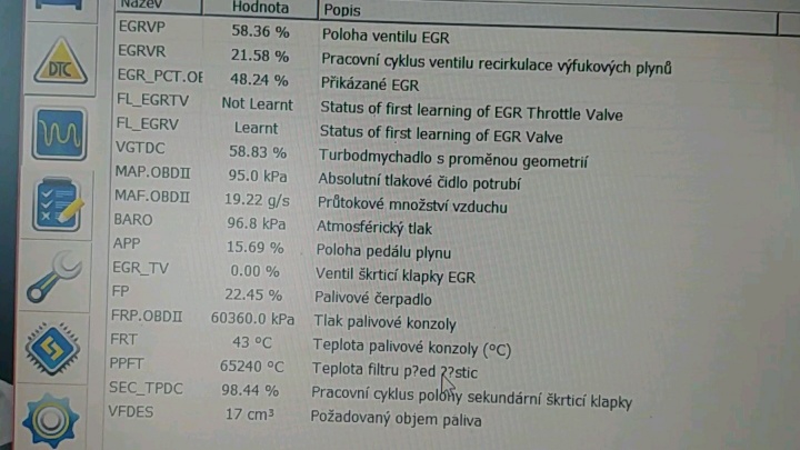 Na diagnostice jsem měřil i hodnoty za jízdy, zkusím dát foto hodnot. Fofo je bez DPF.