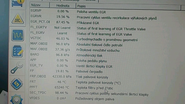 Na diagnostice jsem měřil i hodnoty za jízdy, zkusím dát foto hodnot. Fofo je bez DPF.