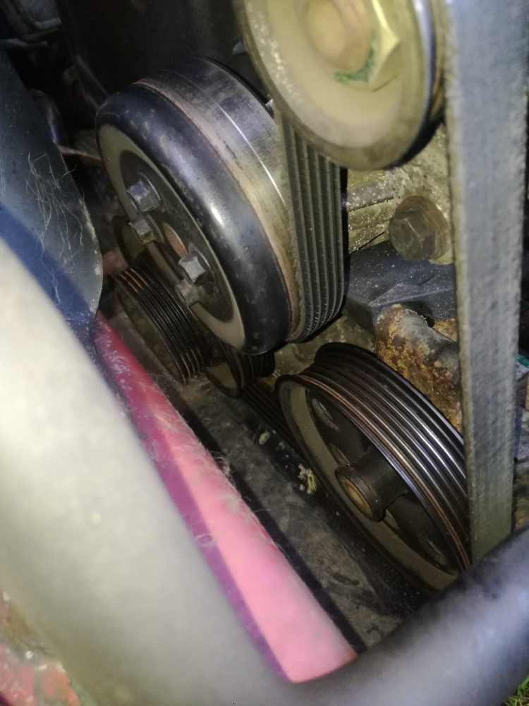 A další věc, co mi vrtá hlavou je, proč na řemenici na klice mám nasazenou ještě druhou řemenici pro druhý řemen, který tam ale neni. Takhle to mám třeba řešený na bmw, že na klice jsou 2 řemenice a ta druhá co je víc vepředu je pro malý řemen jen pro klimu, jenže tady je i ta klima řešená pouze jedním, ale delším řemenem.