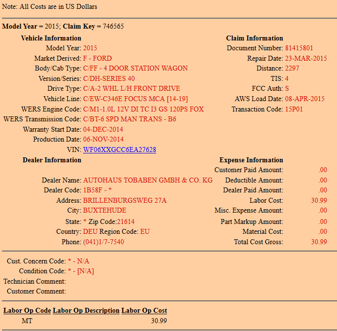 Auto je rezervoavné na pondělí v 8:30 kdy tam dorazí známej, který to auto zkontorluje a pokud bude OK, tak mě ho koupí. Tak kdyby se to stihlo do té doby, budu vděčný. Do telefonu řekli, že auto bylo servisované ve FORDU, tak to chci ověřit, co tam udělali, a zda vyměnili někdy olej v automatu.
