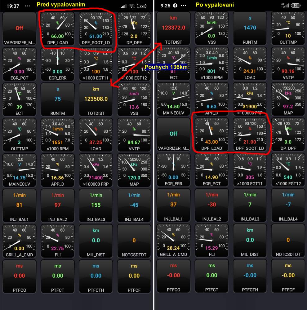 Asi jak u koho, mě se regenerace spouští naprosto debilně. Buď se filtr vypaluje ihned po vyjetí od baráku, regenerace se spustí cca po 1-2km s teplotou vody lehce přes 40°Cjivo píše:Vypalovani zacina cca nad 74% pokud jsou splneny podminky a to zahrate auto a chvilku jizda cca 2500otacek a pokud se nejezdi po dalnici, dokaze se pozdrzet az do cca 90%.