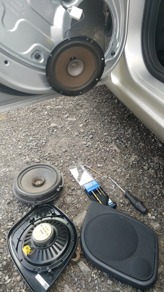 vytahnu malinko kostlivce, ale kdyby nekdo hledal, treba mu to pomuze. Dnes jsem resil problem zadnich repro u myho FF2 kombi 3/2006. Oba zadni repraky byly KO. Vyndal jsem je ven, zmeril, misto 4 Ohmu vykazovaly nekonecno, takze prerusena civka. Z peugeotu 306, co mi lezi na zahrade na dily, jsem vykuchal ze zadniho plata originaly peugeot a skrizil je s fordem