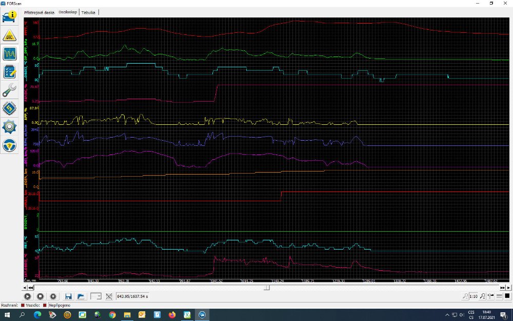 Děkuji, na to jsem málem zapomněl. Zatím ale mohu předpokládat, že to tím není, protože není splněná žádná podmínka pro její spuštění (ani maximální ofuk předního skla). Zatím to při měření vždycky ukazovalo teplotu DPF kolem těch 600°C. Ale dneska jsem to v danou chvíli neměřil.