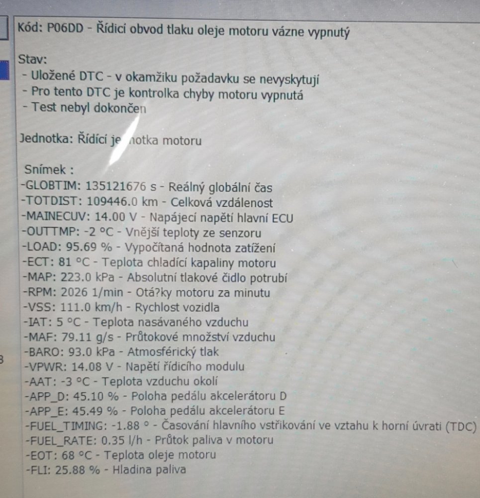 Tak moc to tady nežije. Měl jsem také chybu P06DD. Při výměně oleje jsem vyčistil čidlo (IPA plus vzduchem ofoukal). Vrátil. Projel CB - Vranov - CB a dobrý. Ale bylo to spíš tím, že jsem to moc nehnal a nedostal se přes 3 tisíce.