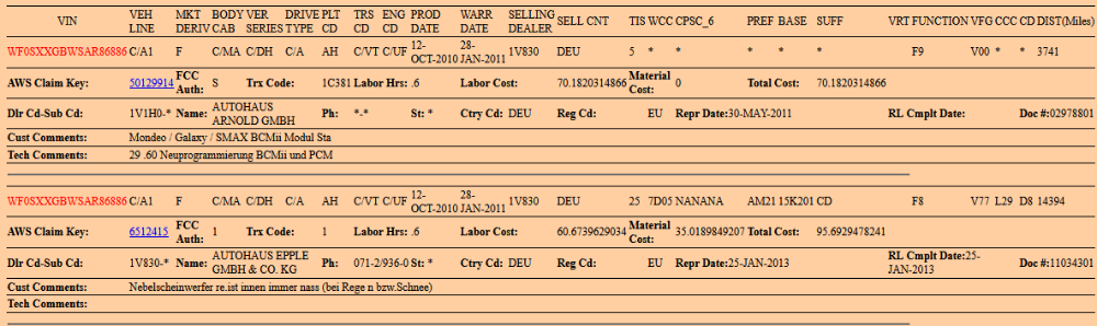 Zkoušel jsem podle návodu Fordzona - dozvěděl jsem se typově co je zač a co má za výbavu. Nikde jsem tam neviděl žádné záznamy (možná jen neumím hledat - dělám to poprvé).