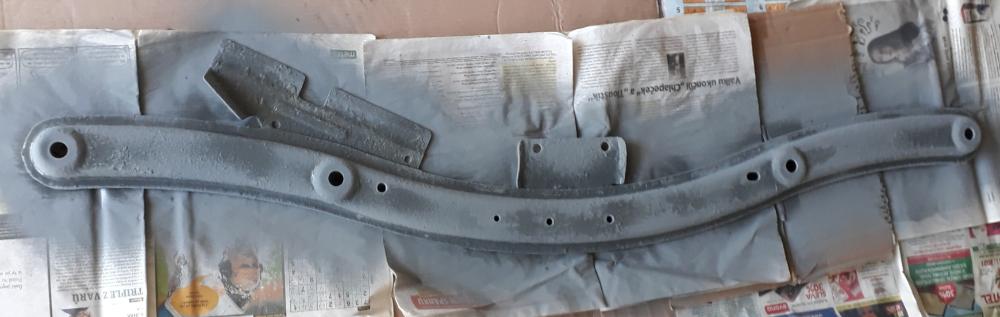 Jinak jsem pak ještě provedl "sportovní odlehčení" té podvozkové příčky, která měla na sobě vrstvu různých nátěrů, které se už nechutně odlupovaly. Když je namontovaná na autě, tak se k ní blbě může, takže při předchozích aplikacích ochranných nátěrů nebyla nikdy pořádně očištěna. Teď jsem si s ní trochu víc vyhrál.
