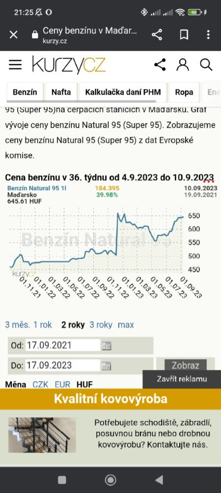 Kousek od rakouských hranic jsem předevčírem tankoval za 44,40 .... Verva100, zvažoval jsem otočku do Polska, aby mi to Orlen bouchnul levněji, ale co čert nechtěl, byl jsem nejdál od Polských hranic jak je to snad u nás možný :mrgreen: