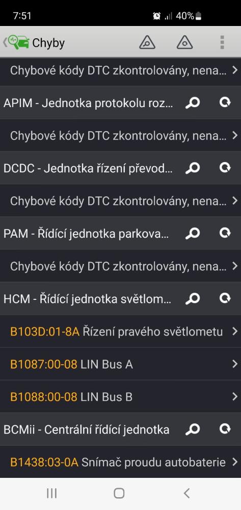 Dnešní diagnostika potvrdila, že chyby tam jsou, bohužel. Teď teda nevím, jestli má smysl zkoušet jinou řídící jednotku, nebo rovnou shánět světlo. Po vymazání zůstala zatím jen chyba B103D - řízení pravého světlometu.