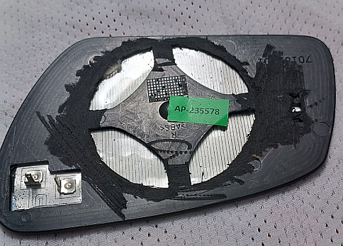 Takže jsem na origo držák pomocí oboustranné nano lepenky (2 vrstvy) přilepil náhradu, tedy zrcadlo, fólii i plast. rámeček. Tím se náhrada nevešla do původního plastu, protože ten plast po obvodu přesahuje sklo. Proto 2 vrstvy (asi 2 mm. totál). Na poslední fotce je vidět tu lepenku. Drží to dobře, jen nemám vyřešeno vyhřívání, protože náhrada má konektor v místě, kde má originál úchyt na "tyčku" která vede k motorku. Na autě to není prakticky poznat. Zabralo to asi 30 min.