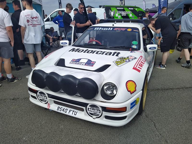 Už kousek od naší plochy, jsme viděli obrovské množství Fiest různých generací - je pravdou že ST180 je opravdu ve velkém počtu v anglii pořádně oblíbená a sekunduje jí její nástupkyně ST200. Samozřejmostí byly Focusy ST225 - také ve velkém počtu. Obecně, letos to byl ročník, kdy největší zastoupení co se počtu modelu týče, byla právě Fiesta. Procházíme kolem další tribuny a vystavované plochy. Hned z dálky do očí bijící - Escort RS Cosworth WRC tovární homologační speciál se "čtyřokem" na kapotě...Hned nám padla brada na začátek...o kus dál stojí první Ford Capri s krásným řadovým šestiválcem, vedle něj Cortiny poslední generace. Nevěděli jsme, kam dřív s očima - protože za auty byl plot a za ním dráha, takže chvíli jsme obdivovali stav a stáří aut a najednou hlavy nahoru a dívat se na ty zběsilosti na dráze...