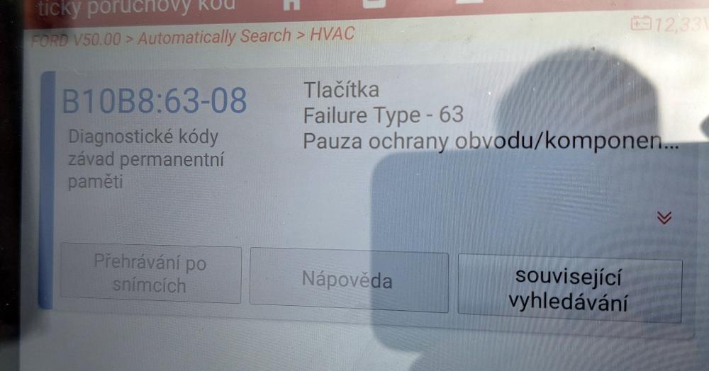 Diagnostika mi hlásí chybu HVAC B10B8:63-08 u Fordu Focus MK4.