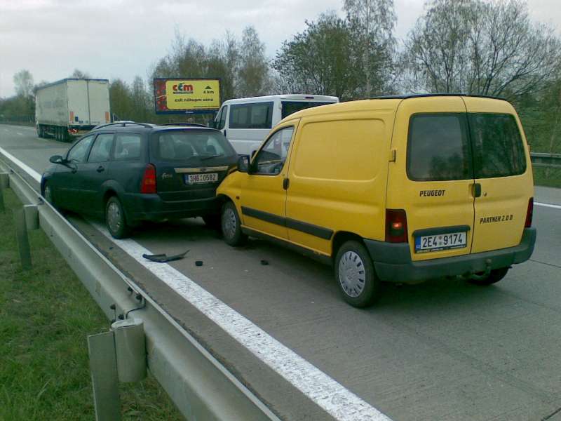 Za nim jel ten peugeot, ten nestihl nejak reagovat, vzal nas oba a me nastrcil do passatu prede mnou.